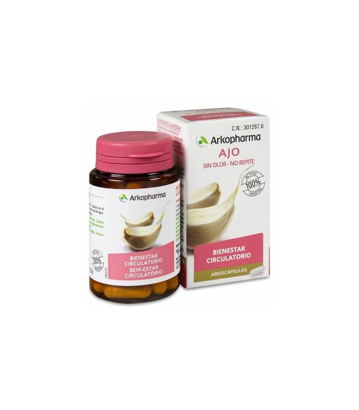 Arkocápsulas® Ajo es un complemento alimenticio especialmente diseñado para el bienestar circulatorio. El Ajo contribuye a mantener una adecuada circulación sanguínea y ayuda a mantener los niveles normales de colesterol. Gracias a su innovador proceso de fabricación, no produce mal aliento.