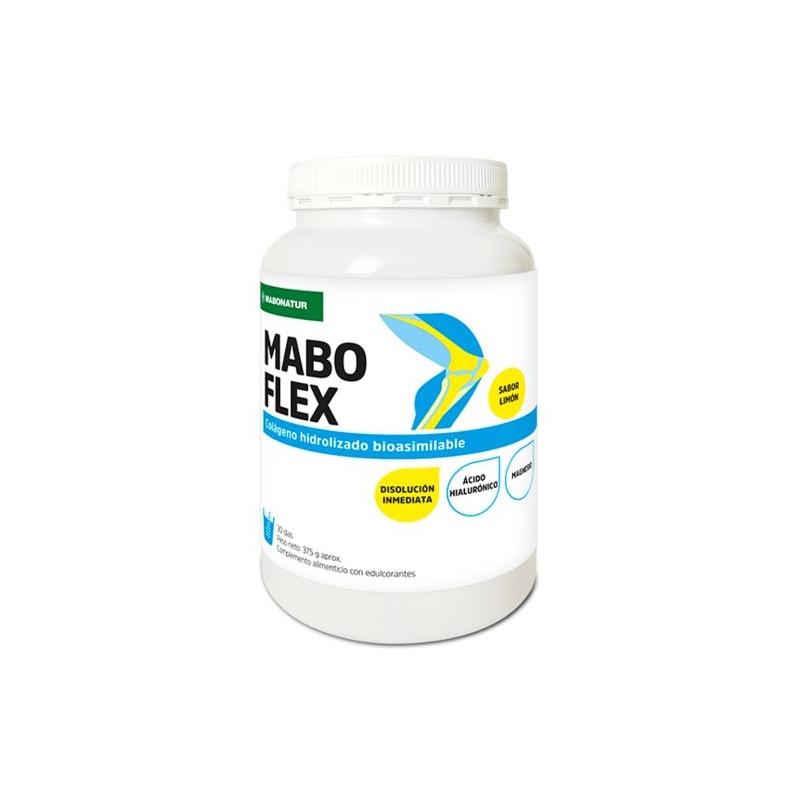 MABOflex Colágeno es un complemento alimenticio con colágeno hidrolizado bioasimilable, ácido hialurónico, magnesio y vitaminas B1, B2, B6 y C. Contribuye al buen funcionamiento de músculos y huesos, a la formación de...