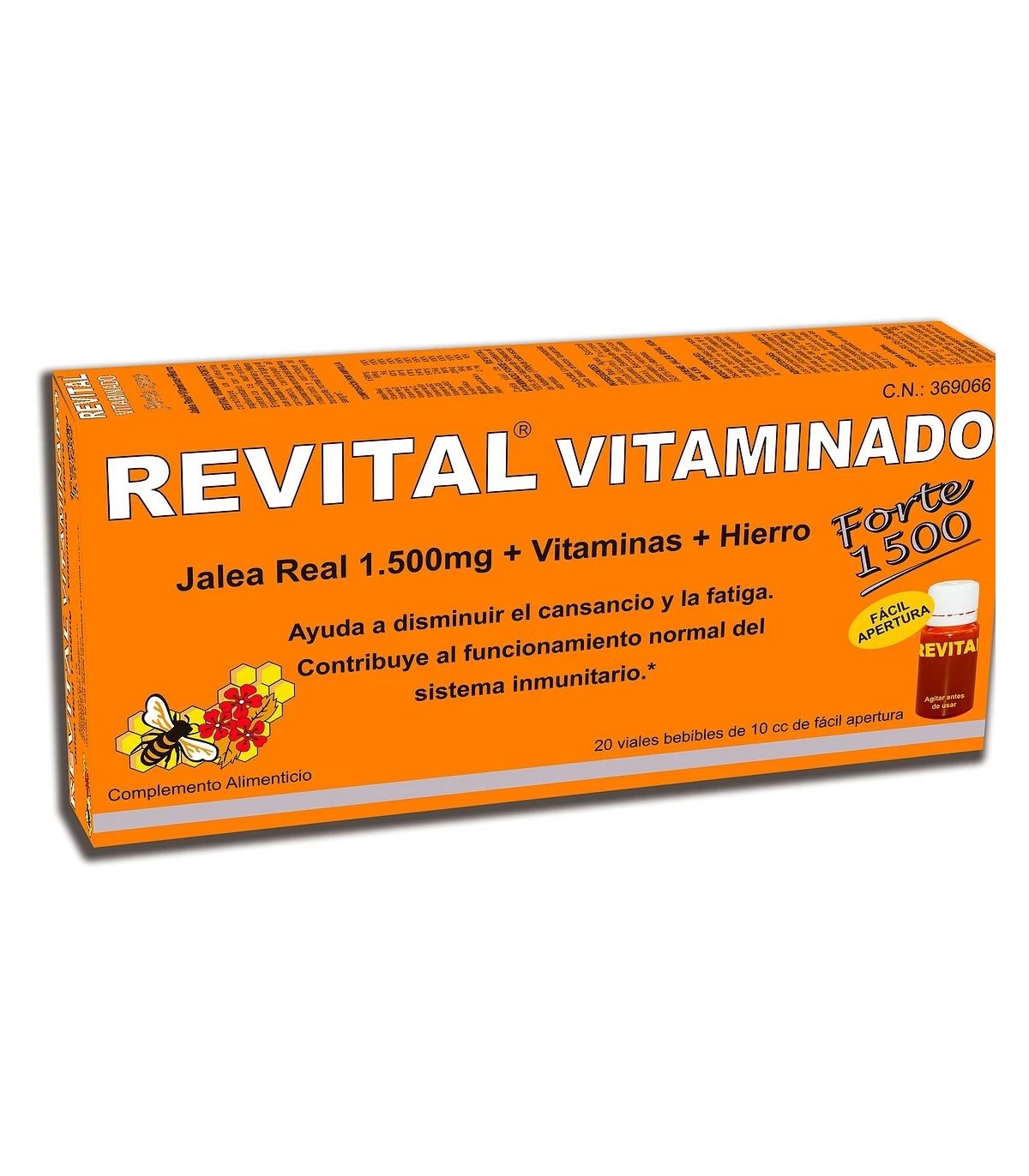 Revital Vitaminado Forte 1500 Jalea Real 1500 mg + Vitaminas + Hierro, 20 Ampolas Bebibles de 10 cc: Ayuda a compensar esfuerzos físicos e intelectuales.